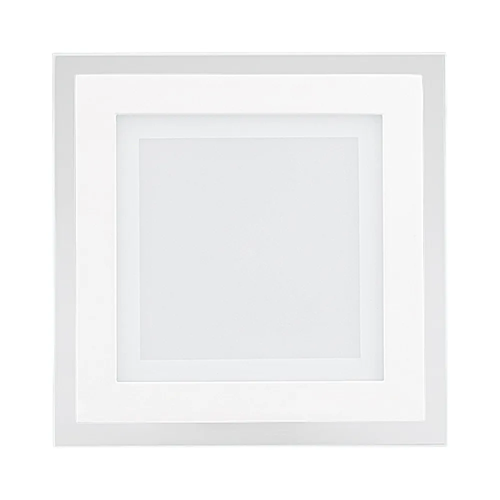 Стеклянная квадратная панель 12Вт / БЕЛЫЙ 5500-6000K / 950лм / 120°. Размер 160x160x45мм (в отверстие 125x125мм). Корпус белый. Питание от сети AC 230V, драйвер в к-те 300mA 25-45V. Для использования с диммерами TRIAC замените драйвер на ARJ-LK48320-DIM (приобретается отдельно). Для помещений.