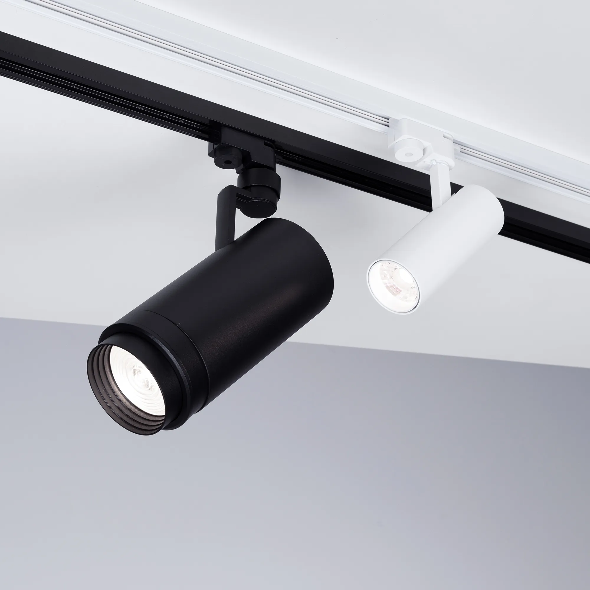 Светильник подвесной для треков/шин 2 провода. Мощность 30 Вт, св. поток 2700-3300 лм, 90 лм/Вт, белый 6000 K, CRI>90, угол 24°, напряжение питания 230 В. Белый круглый корпус из алюминия, материал линзы PMMA , степень защиты IP20. Размер: диаметр 90 мм, высота 185 мм. Монтаж на трек 1-фазный. Драйвер встроенный 30-40 В, 750 мА., пульсация <1%.