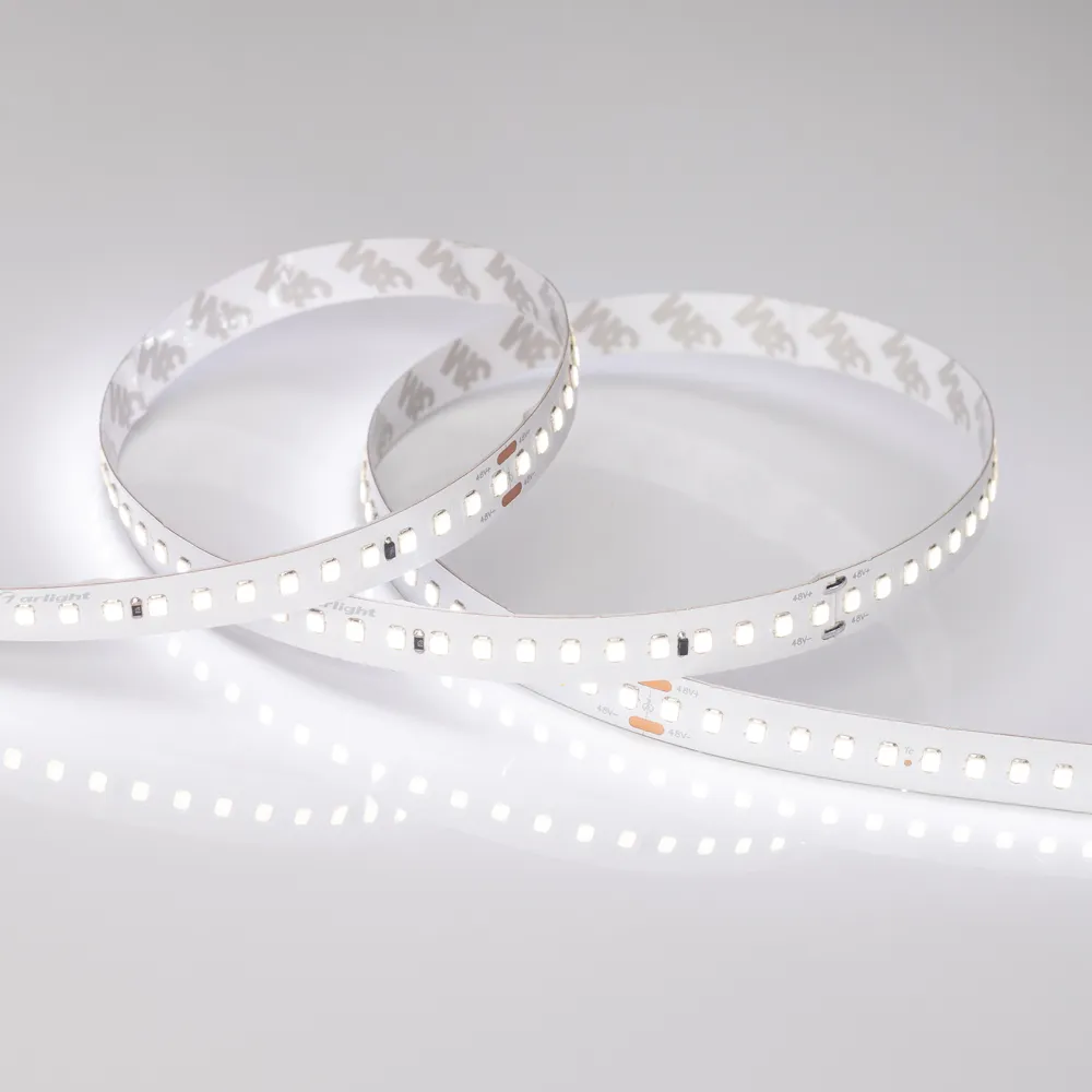 Поставка под заказ от 1000 м. Стабилизированная лента LUX, подключение 50м в одну линию, светодиоды smd 2835, 144шт/м (7200шт на 50м), белая плата 12мм, скотч 3М. Цвет БЕЛЫЙ 5600-6500K. Питание 48V, мощность 5.8 Вт/м (290 Вт на 50м), угол 120°, цветопередача CRI>85. Размеры 50000х12x1.6мм. Мин.отрезок 166.67мм, 24 шт светодиодов. Пакет 50м. Цена за 1м.