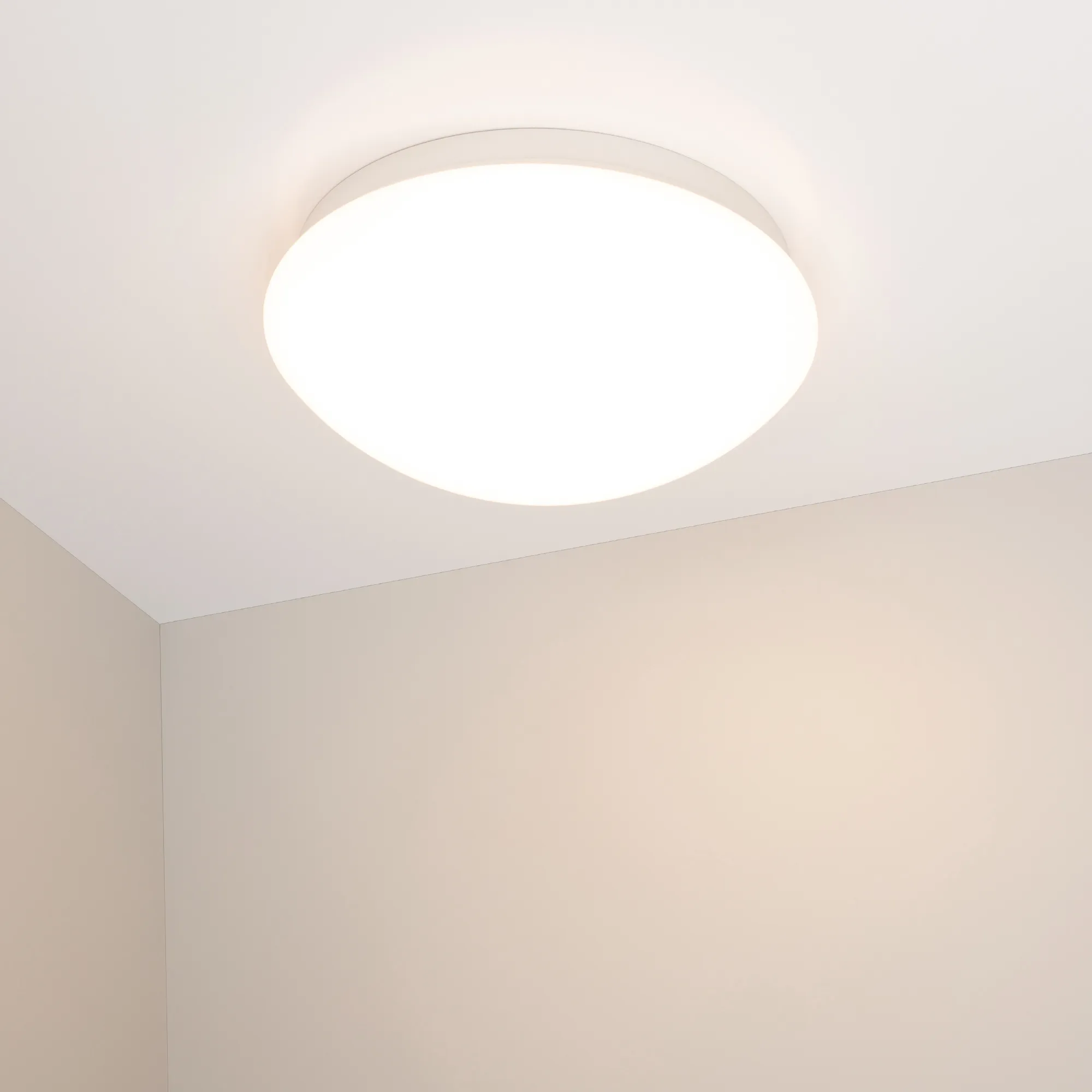 Накладной светильник. Мощность 8Вт, св. поток 500 лм, 70лм/Вт, теплый 3000 K, CRI>80, угол 120°, напряжение питания 230 В. Круглый пластиковый корпус, плафон пластик, степень защиты IP44. Размер: диаметр 180 мм, высота 75 мм. Монтаж накладной. Драйвер встроенный, пульсация <5%.