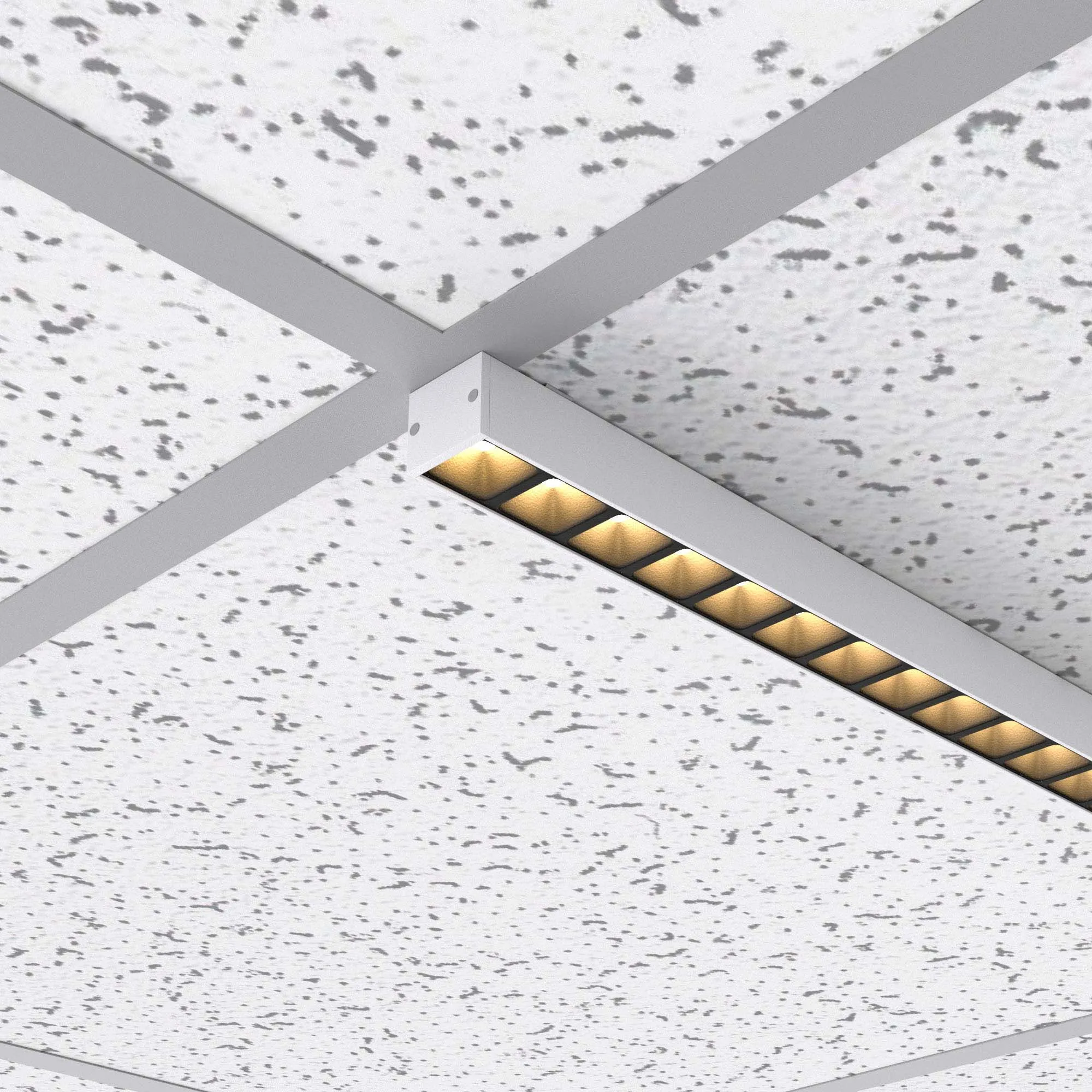 Светодиодный светильник для направляющих потолка Армстронг шириной 15 и 24 мм. Мощность 14 Вт, св. поток 1190 лм, 76 лм/Вт, теплый 3000K, CRI>80, угол 80°, напряжение питания 48 В. Белый квадратный корпус из алюминия, экран PC, степень защиты IP40. Размер: длина 600 мм, ширина 25 мм, высота 28 мм. Монтаж накладной. Драйвер поставляется отдельно.