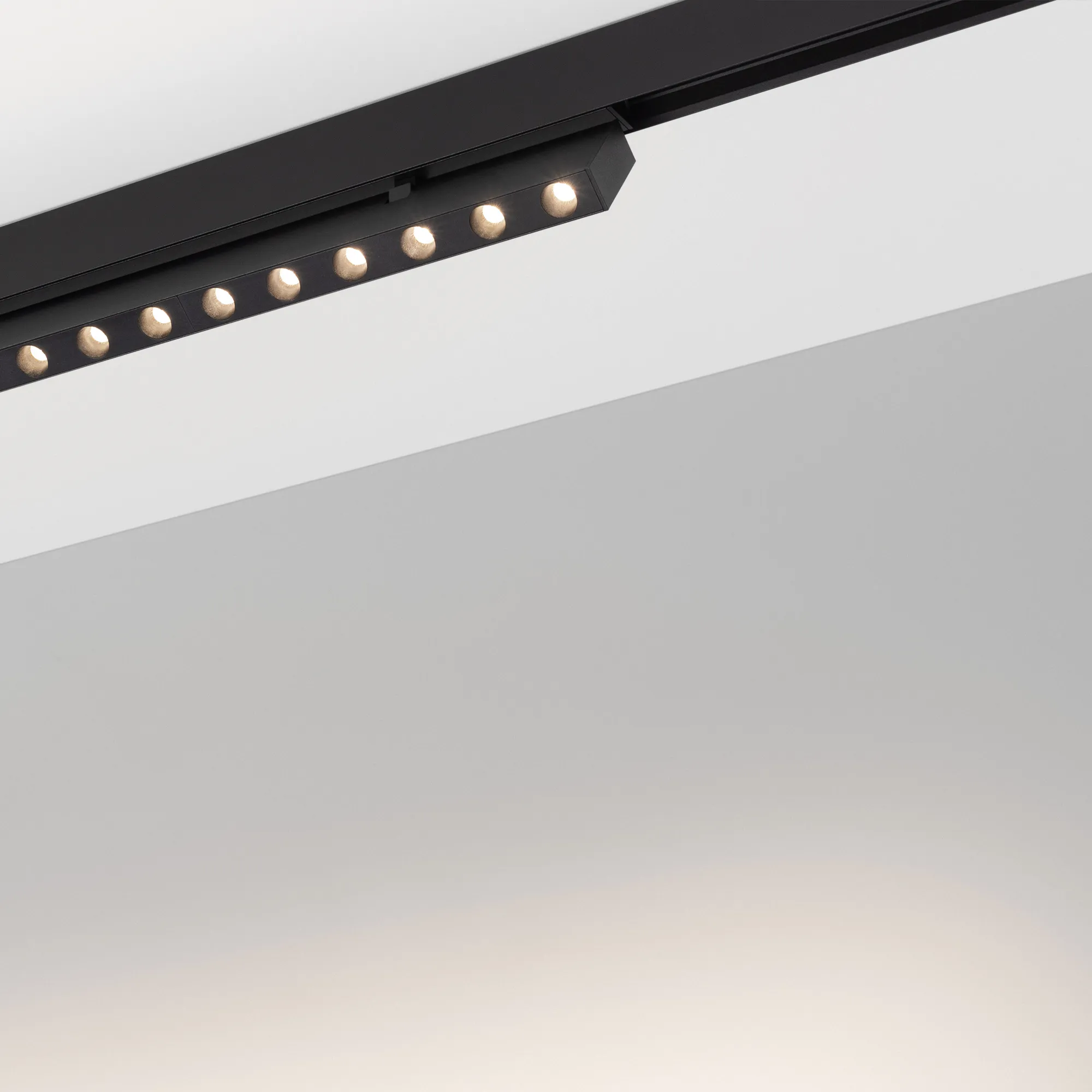 Светильник поворотный для магнитных треков шириной 25мм, 18Вт. Цвет свечения ДНЕВНОЙ 4000K, световой поток 1150 лм, угол 30°, CRI>90. Корпус прямоугольный, металл, цвет черный, IP20. Размеры LxWxH 604x20x46мм. Входное напряжение DC24V, мощность 18Вт. Драйвер DС24V/AC230V поставляется отдельно. Диммируется только с 026407, 027633.