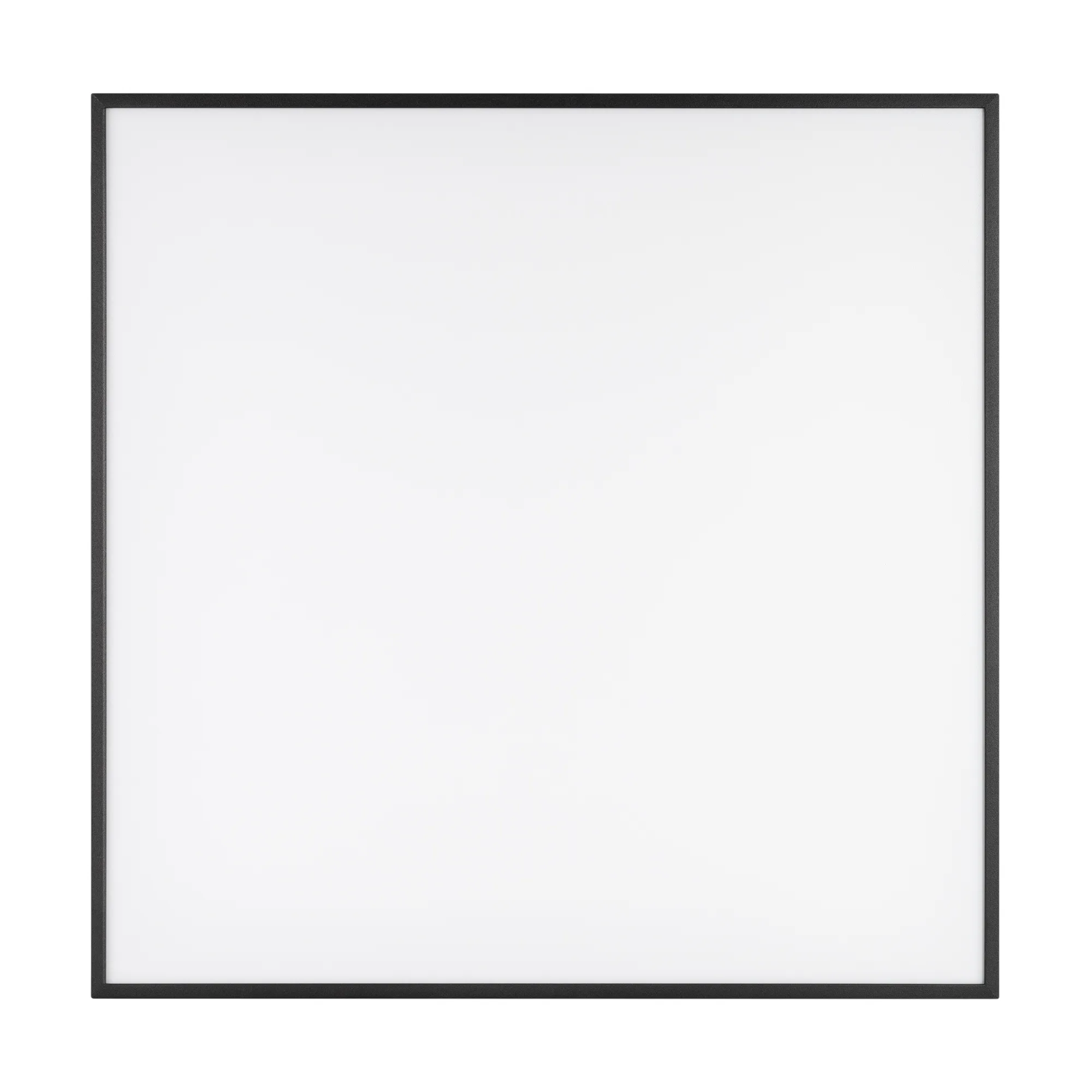 Накладной светильник. Мощность 40 Вт, св. поток 2590-3200 лм, 80 лм/Вт, теплый 3000 K, CRI>90, угол 120°, напряжение питания 230 В. Черный квадратный корпус из алюминия, экран PC, степень защиты IP40. Размер: длина 400 мм, ширина 400 мм, высота 64 мм. Монтаж накладной. Драйвер 27-40 В, 1000 мА, пульсация <5%.