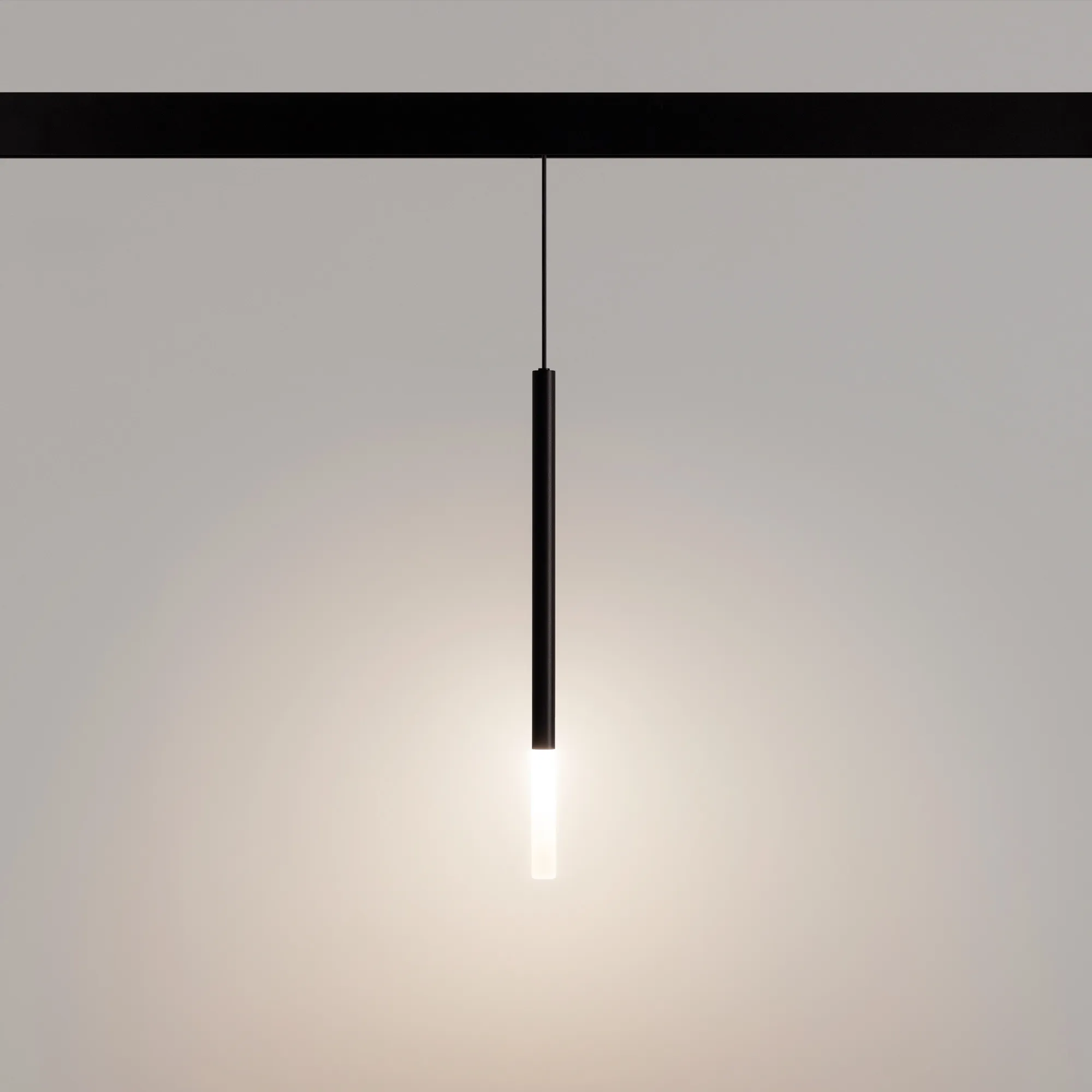 Светильник для магнитных треков MAG-ORIENT шириной 26 мм. Мощность 6 Вт, св. поток 100 лм, дневной 4000 K, CRI>90, угол 180°, напряжение питания 48 В. Черный цилиндрический корпус из металл, степень защиты IP20.Размер: длина светоизлучающего модуля 120 мм, длина светильника 450 мм ширина 20 мм, высота с учетом подвеса 2000 мм. Монтаж на трек MAG-ORIENT. Пульсация <1%. Подвес регулируется.
