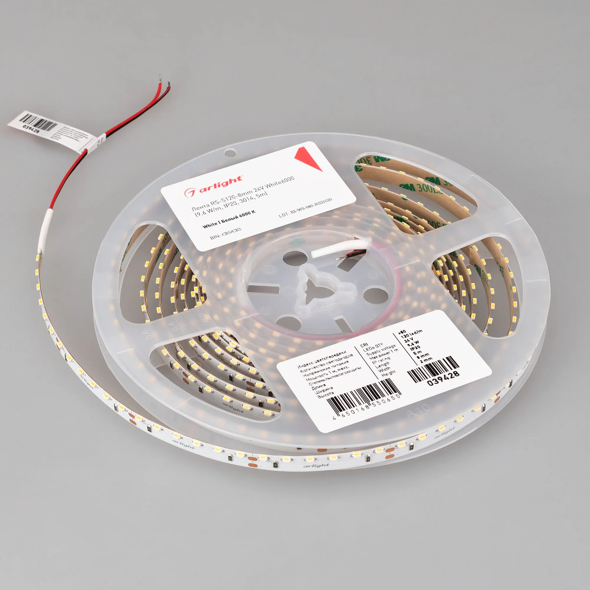 Лента светодиодная RS-S120-8mm 24V White6000 (9.6 W/m, IP20, 3014, 5m) (Arlight, боковое свечение)