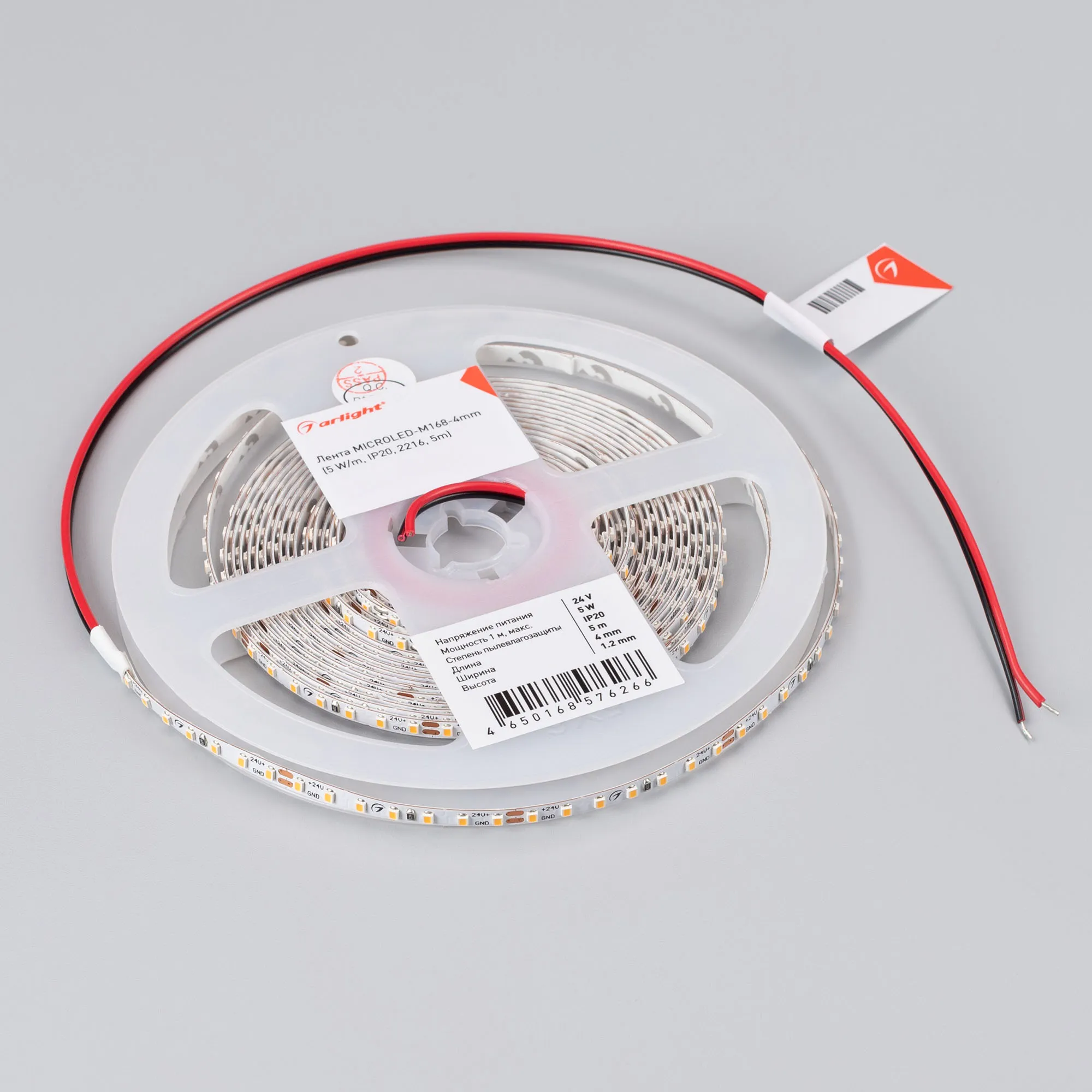 Лента светодиодная MICROLED-M168-4mm 24V Warm3500 (5 W/m, IP20, 2216, 5m) (Arlight, узкая)