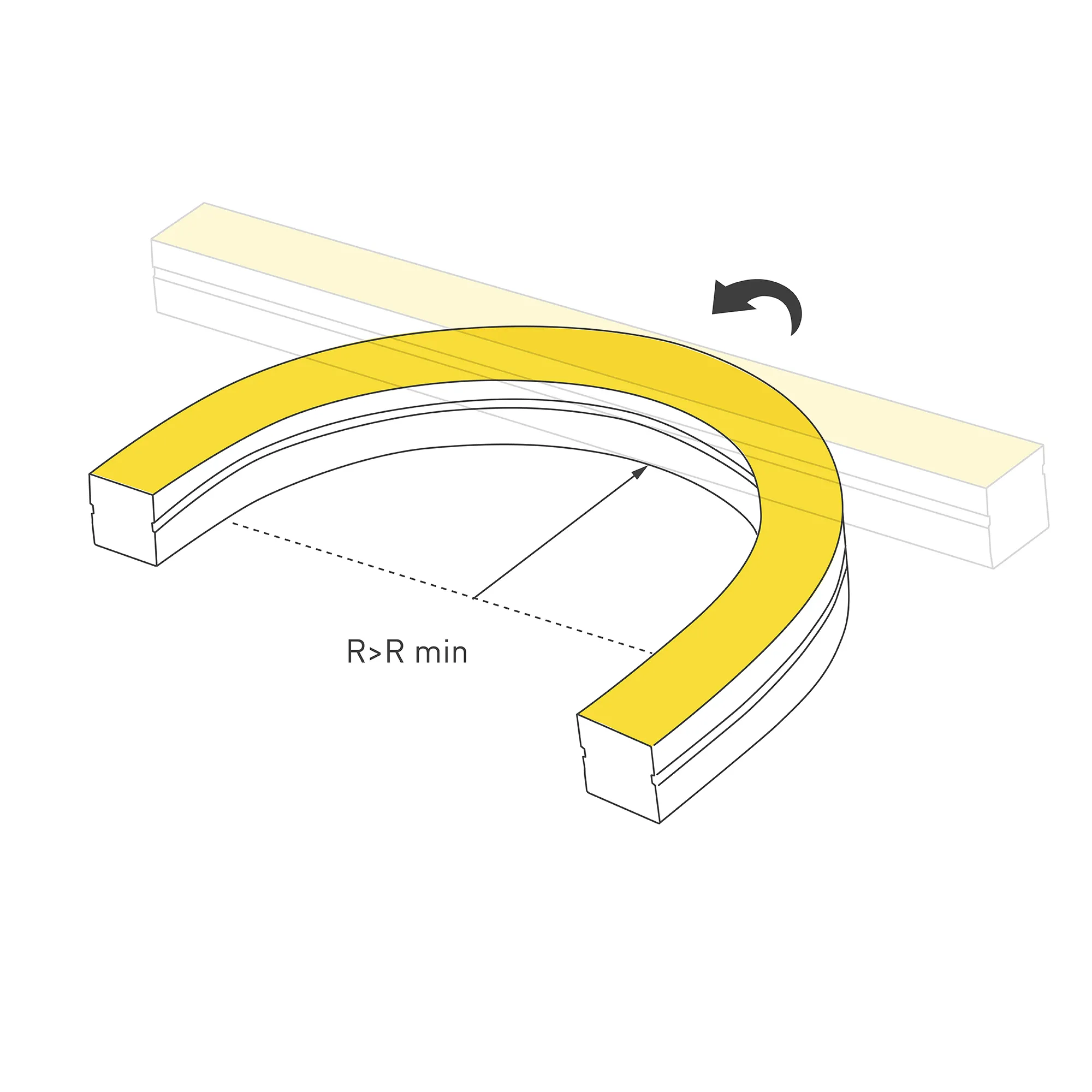 Гибкая герметичная лента (неон серии MOONLIGHT), сечение 20×20 мм. Светодиоды CSP 280 шт/м. Цвет свечения ТЕПЛЫЙ (3500К), индекс цветопередачи CRI>90, световой поток 460 лм/м, угол излучения 114°. Мощность 10 Вт/м, питание 24 В. Класс пылевлагозащиты IP67. Размеры 15000×20×20 мм. Мин. отрезок 50 мм. Горизонтальный изгиб SIDE, минимальный радиус изгиба 180 мм. Катушка 15 м. Цена за 1 м. Гарантия 5 лет.