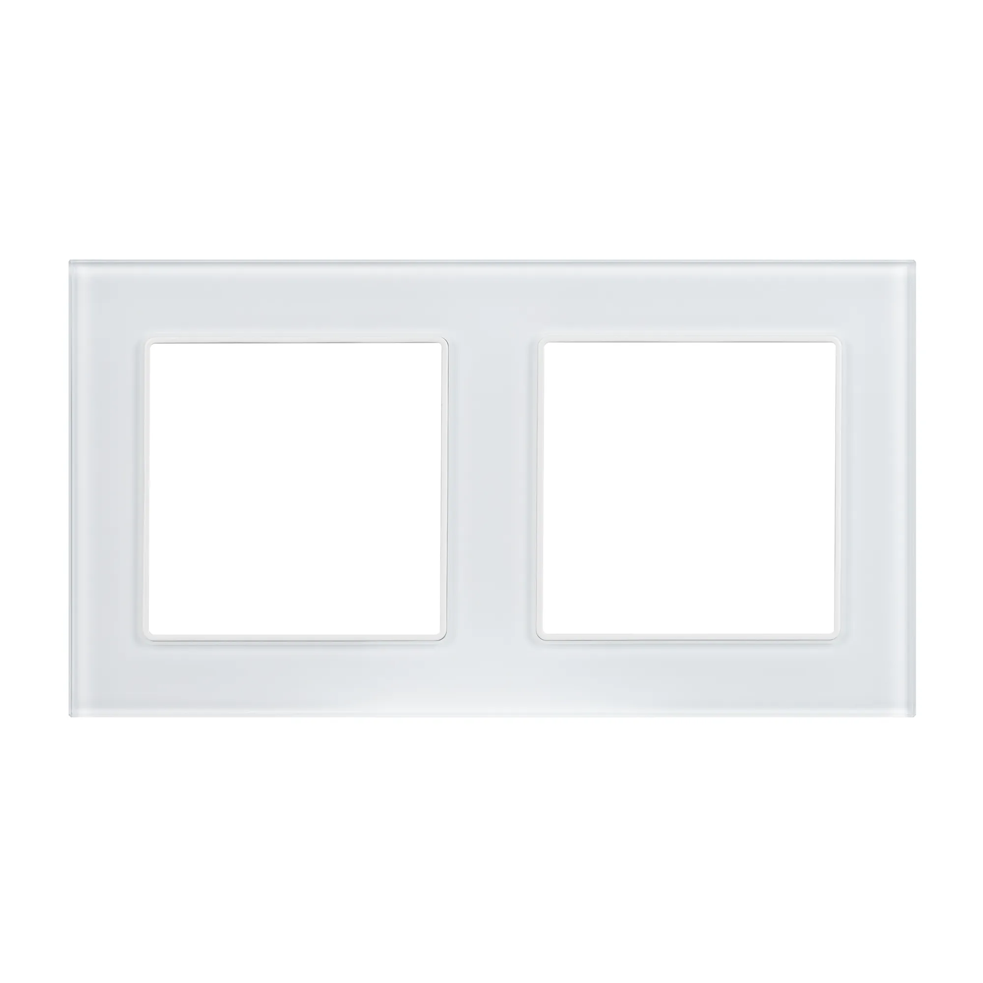 Рамка стеклянная на 2 поста, под встраиваемый механизм (квадрат). Цвет - белый. Ориентации монтажа - горизонтальная.