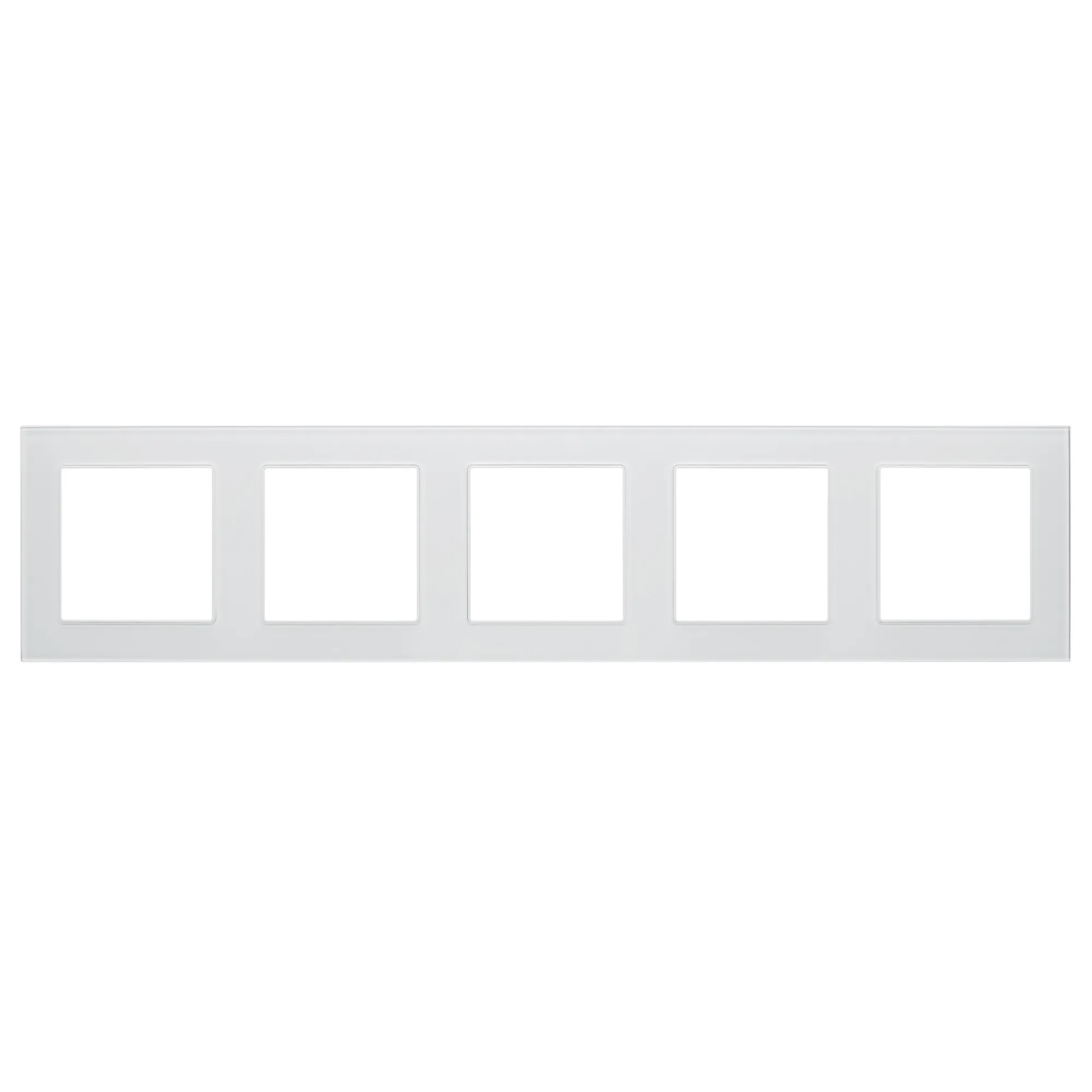 Рамка стеклянная на 5 постов, под встраиваемый механизм (квадрат). Цвет - белый. Ориентации монтажа - горизонтальная.