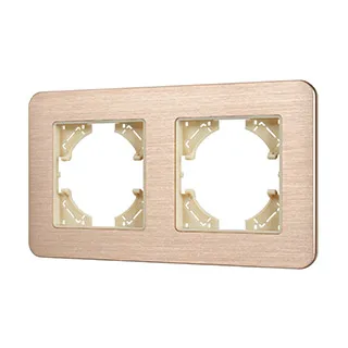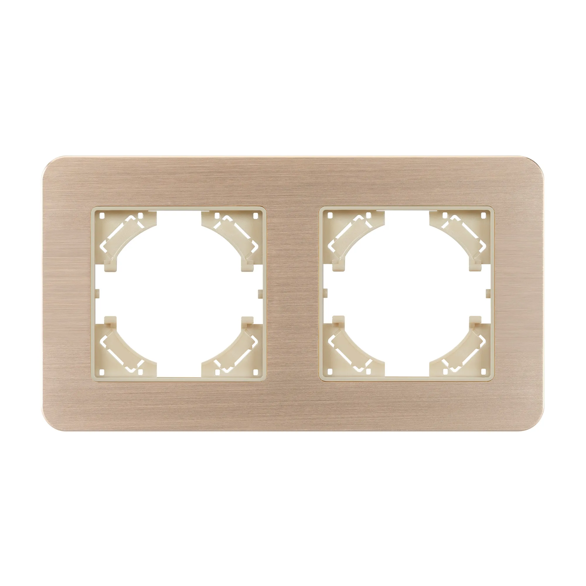 Рамка алюминиевая на 2 поста, под встраиваемый механизм. Цвет - золотой. Среднего уровня герметичности IP20. Ориентация монтажа - горизонтальная (основным ориентиром служат посадочные выступы для накладки механизма).