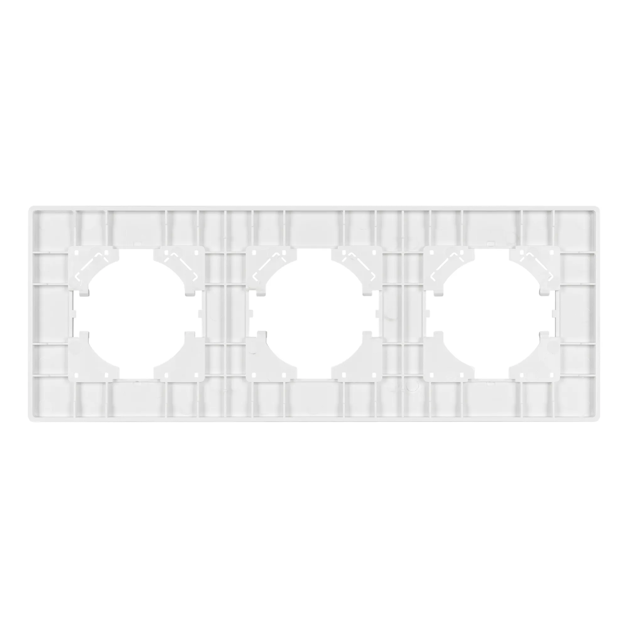 Рамка пластиковая на 3 поста, под встраиваемый механизм. Цвет - белый. Среднего уровня герметичности IP20. Ориентация монтажа - горизонтальная (основным ориентиром служат посадочные выступы для накладки механизма).