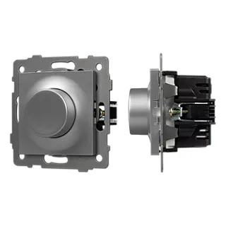 Механизм регулировки света на 1 пост. Цвет - серый. Без фронтальной рамки. Уровень пылевлагозащиты IP20. Механизм устанавливается в стандартный круглый подрозетник. Максимальная нагрузка 500 Вт только для ламп накаливания и галогенных, 150 Вт только для энергосберегающих и светодиодных ламп. Габаритные размеры: длина 71 мм, ширина 71 мм, высота 52 мм. Гарантийный срок 10 лет.