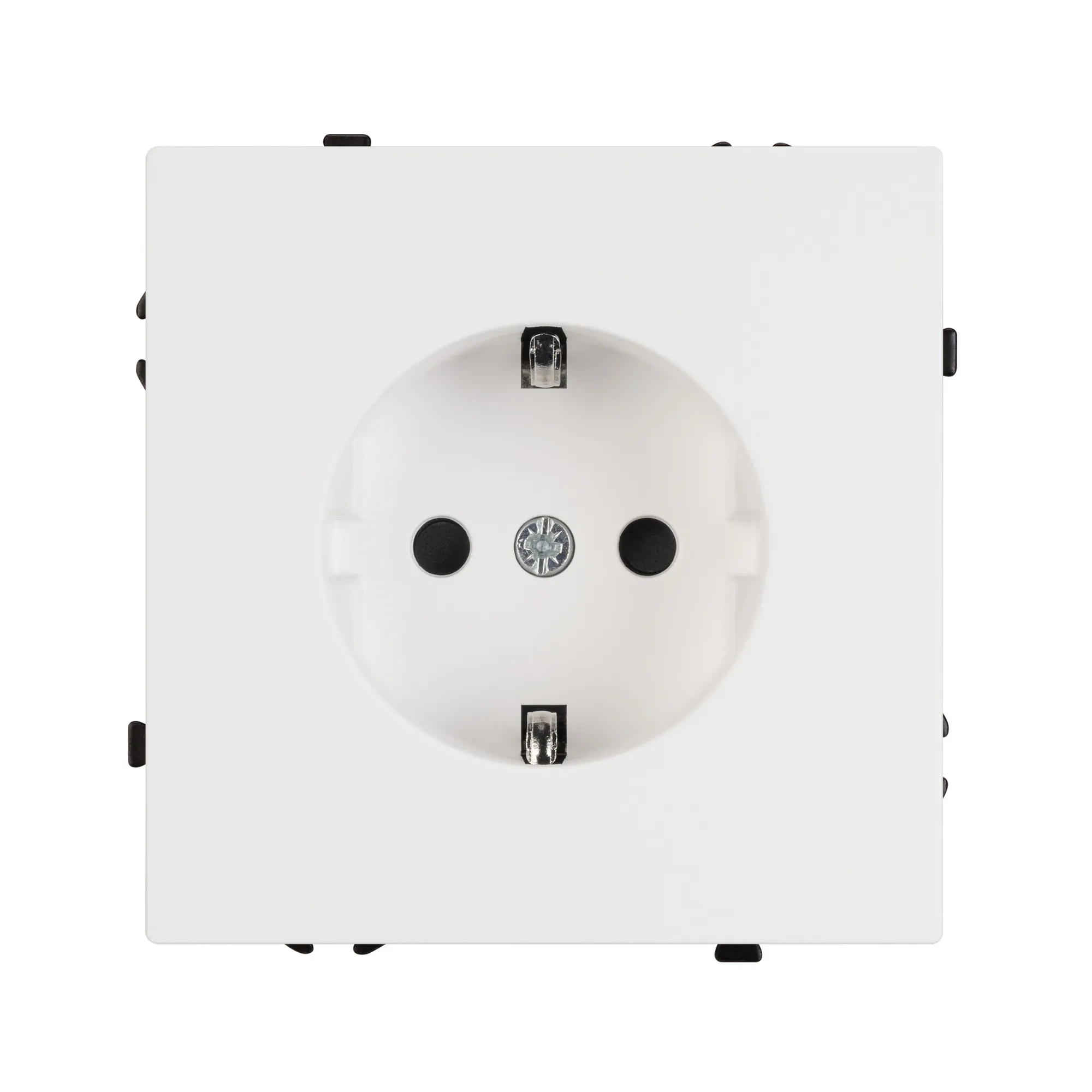 Механизм розетки с заземлением на 1 пост. Цвет - белый, с Soft-Touch покрытием. Без фронтальной рамки. Уровень пылевлагозащиты IP20. Розетка устанавливается в стандартный подрозетник круглого сечения диаметром 60мм.