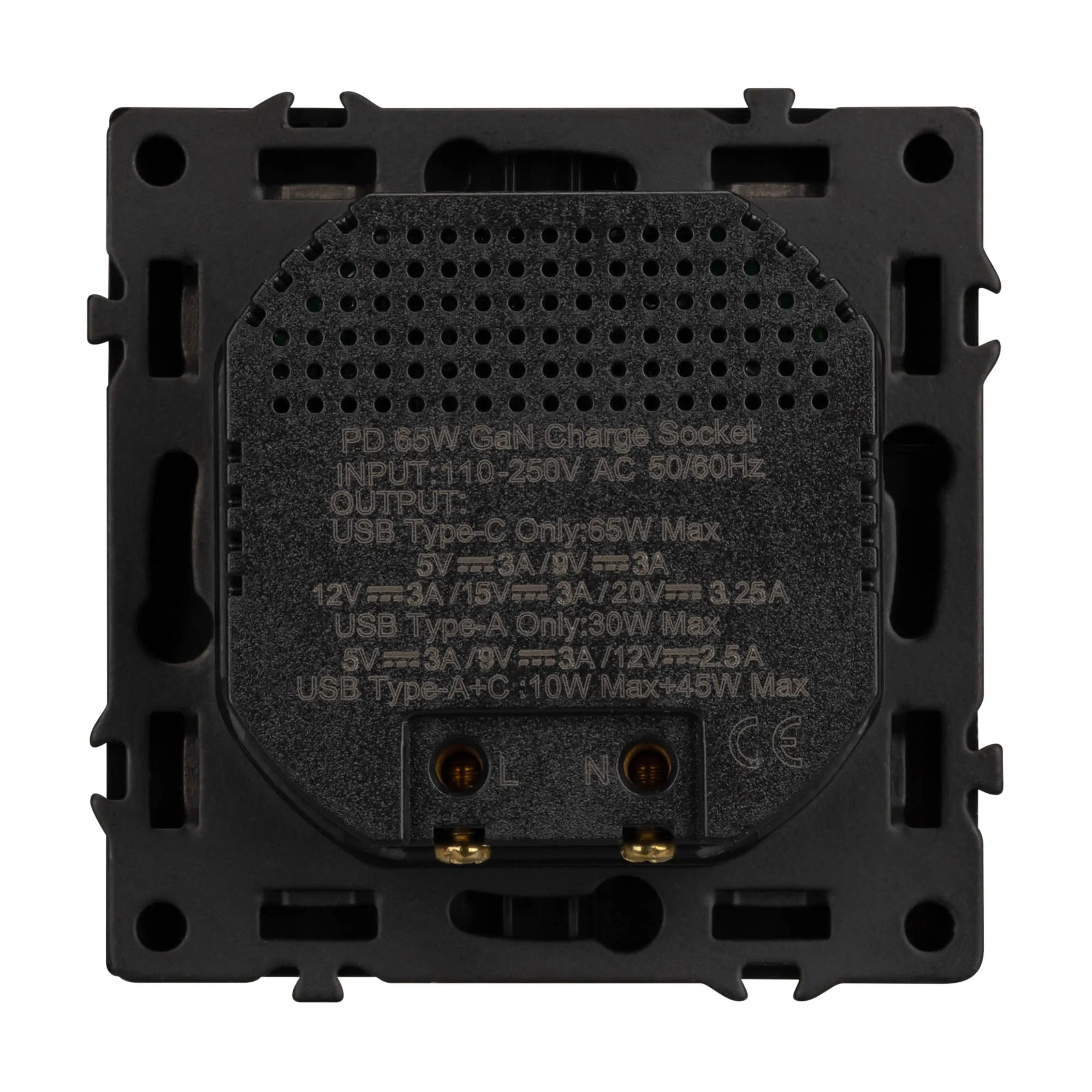 Механизм розетки с быстрой USB зарядкой на 2 порта. Цвет - черный, с Soft-Touch покрытием. Без фронтальной рамки. Уровень пылевлагозащиты IP20. Тип подключаемого разъема - USB Type A + Type C. Устанавливается в стандартный подрозетник круглого сечения диаметром 60мм.