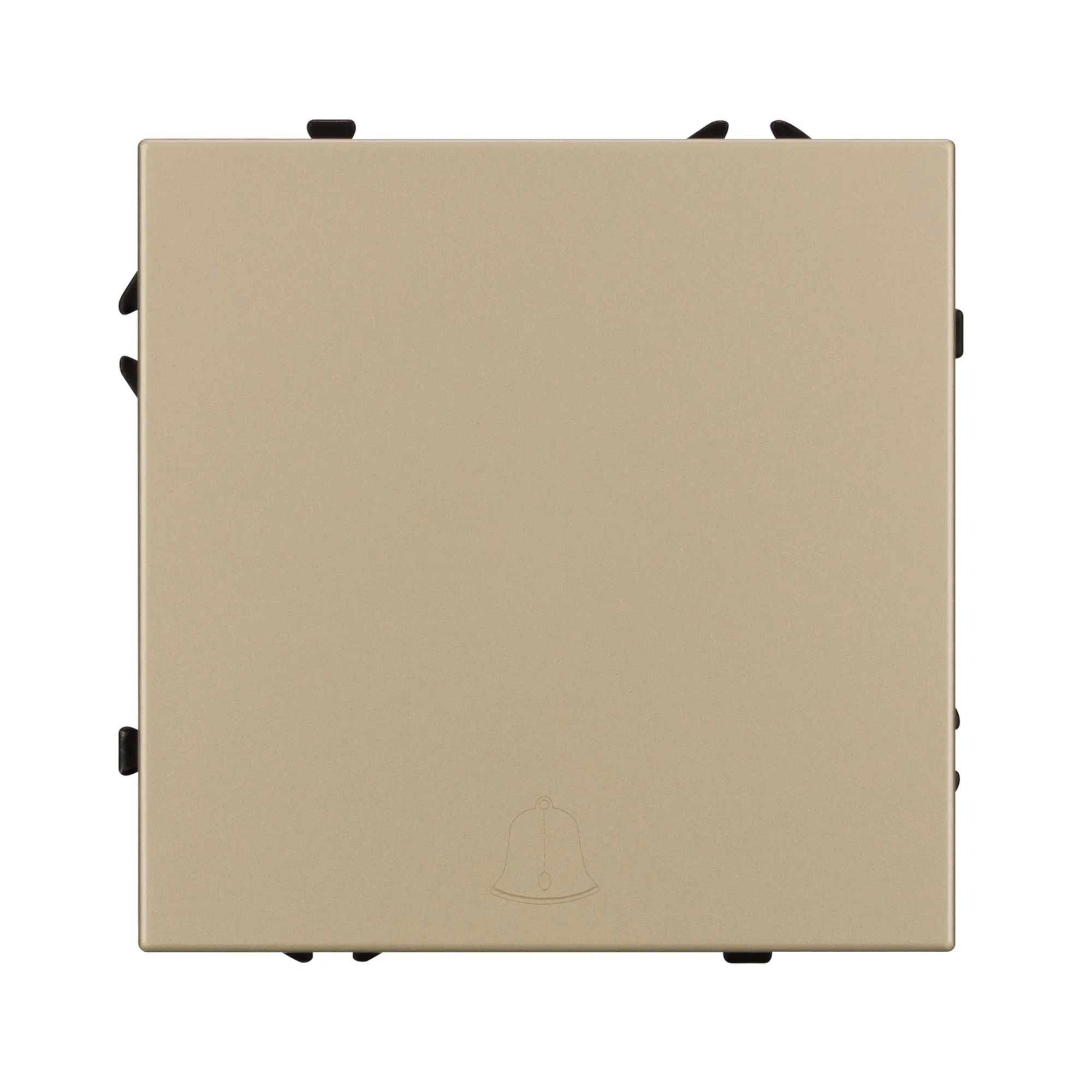 Механизм звонкового выключателя на 1 пост 1 самовозвратная клавиша. Цвет - золотой, с Soft-Touch покрытием. Без фронтальной рамки. Уровень пылевлагозащиты IP20. Выключатель устанавливается в стандартный подрозетник круглого сечения диаметром 60мм.