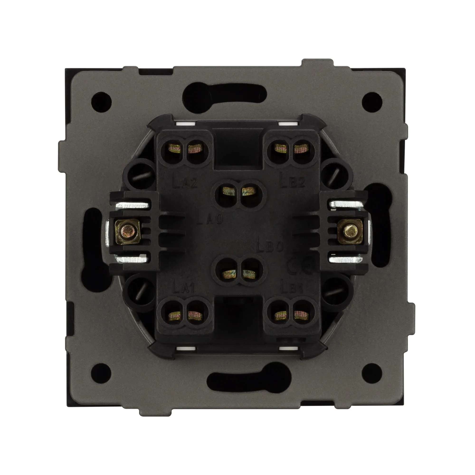 Механизм выключателя света клавишный на 1 пост 2 клавиши (проходной). Цвет - черный, Soft-Touch покрытием. Без фронтальной рамки. Уровень пылевлагозащиты IP20. Выключатель устанавливается в стандартный подрозетник круглого сечения диаметром 60мм.