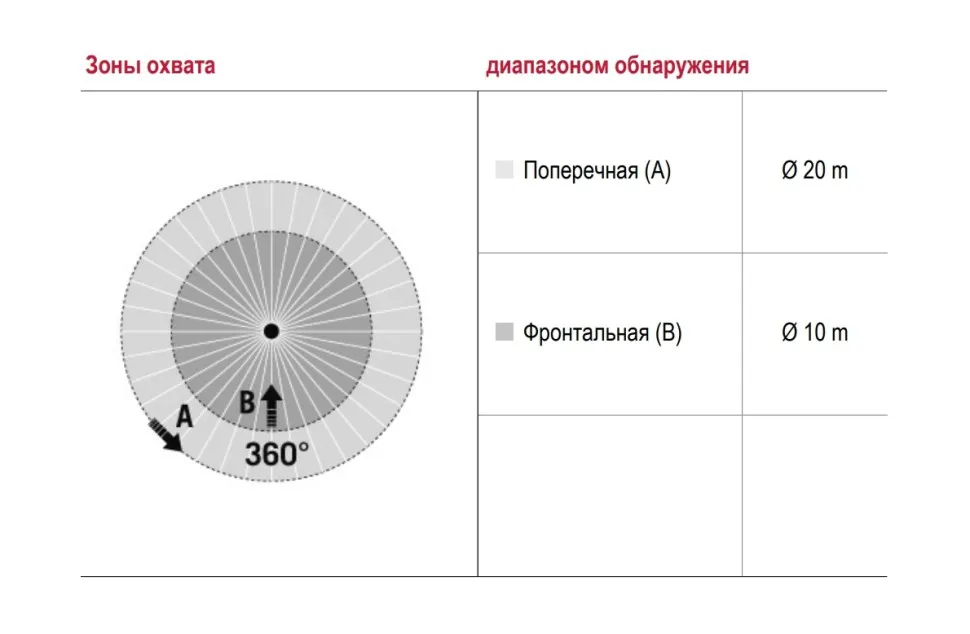 | диапазоном обнаружения поперек | Ø 20 м |